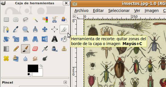 Generad 5 ficheros jpg que contegan un solo insecto a partir de recortes rectangulares generados con la herramienta de recorte rápido.