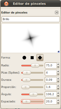 - Asigna el nombre de "Brillo" al nuevo pincel.
