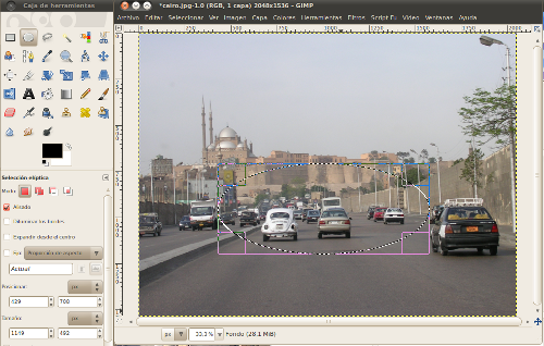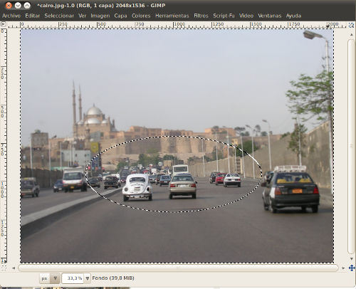 Debemos seleccionar el punto focal de nuestra imagen, la regla general es que el punto focal debe de estar a media distancia. Utilizando la herramienta de selección eliptica debemos de seleccionar el punto elegido.