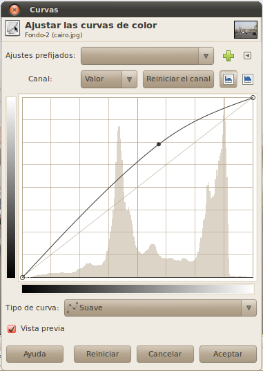 Mediante el ratón vamos a desplazar ligeramente la curva de color del mismo modo que el ejemplo siguiente: