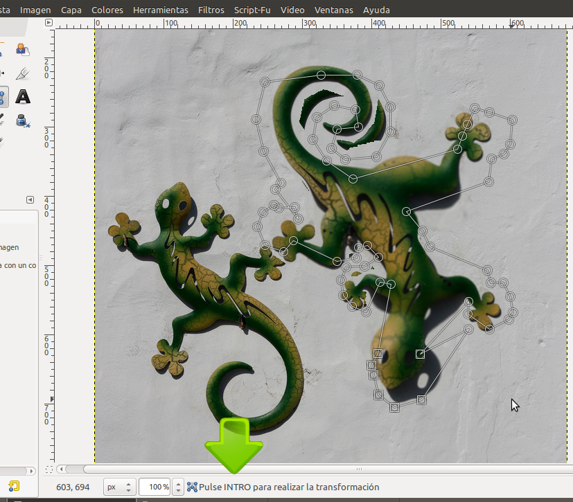 Utilizando el ratón vamos marcando puntos alrededor de la figura que queremos deformar: